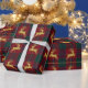 This design features a traditional plaid or tartan pattern composed of deep reds, forest greens, and golden yellow lines, which evoke classic Christmas colors. Superimposed on this festive background is a repeating motif of silhouetted golden deer or reindeer, often depicted in a leaping or running stance. The combination of the warm, wintry plaid and the iconic holiday animal strongly suggests this design is perfect for Christmas wrapping paper or a similar seasonal decor.