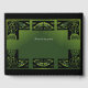 A dramatic green and black Irish design features Celtic knots and hawks.