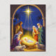 Share the sacred meaning of Christmas with this powerful flat holiday card featuring a traditional Nativity scene. The serene illustration captures the Holy Family kneeling by the newborn baby Jesus in the manger, with the Three Wise Men and gentle sheep attending, all bathed in the light of the Star of Bethlehem. This card is an elegant and meaningful way to send Christmas greetings and wishes of peace and faith during the holiday season.