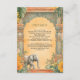 Amaze your guests with this elegant south Indian theme wedding details enclosure card featuring beautiful traditional columns and vintage architectural elements decorated with marigold flowers and banana leaves.