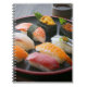 This beautifully composed notebook features an authentic sushi assortment presented on a traditional black lacquer plate with red trim. The vivid colors of fresh seafood—like salmon, tuna, uni, and ikura—pop against the dark background, creating a design that’s both elegant and appetizing.