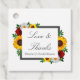 Designen har eleganta solrosor, rosor och prästkragar i en gyllene gul, röd och vit höstfärgspalett. Designen har också en ram i kolgrått. Du kan ändra bakgrundsfärgen på framsidan och baksidan till den färg du vill eller låta båda vara vit.