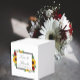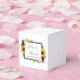Designen har eleganta solrosor, rosor och prästkragar i en gyllene gul, röd och vit höstfärgsättning. Designen har också en ram i kolgrått. Du kan ändra bakgrundsfärgen på framsidan och baksidan till den färg du önskar eller låta båda vara vita.