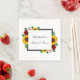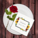Designen har eleganta solrosor, rosor och prästkragar i en gyllene gul, röd och vit höstfärgspalett. Designen har också en ram i kolgrått. Du kan ändra bakgrundsfärgen på framsidan och baksidan till den färg du önskar eller låta båda vara vita.