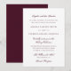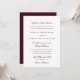 En traditionell bröllopsinbjudan i en burgunderröd och vit färgpalett, med en skarp vit framsida, burgunderröd baksida, eleganta skrivstilaccent och klassisk serif-typografi. Denna porträttinbjudan använder en tidlös formell layout med familjerader, ceremoniformulering, lokalinformation och en graciös strukturerad komposition som passar klassisk brölloppskorrespondens.