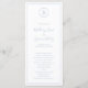 Enkelt dammigt blått bröllopsprogram med ditt monogram i en cirkel överst och dina bröllop-detaljer omges av ett tunt gräns. Namn och sidhuvuden finns i ett handskrivet elegant-skript. Den klassiska, traditionella layouten gör detta program underbart för ett formellt bröllop.