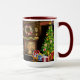 Traditionell mysigt jultomrum, en kamin, träd och presenter och krans.