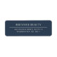 Traditionella returetiketter som har en enkel design med en tunn linje som delar upp ditt företag namn och två linjer text för din returadress i ett klassiskt serif-teckensnitt i elfenben över en marin blå bakgrund. En grundläggande och enkel design som fungerar för alla företag. Detta är ett underbart sätt att lägga till en professionell i kuverten.