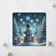 Traditionell fantasifull julkort, en flicka som håller en present sittande på böcker i julgran skog i vinterland magisk natt stjärnor