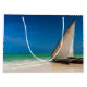 Traditionell fiskebåt på en vit sandstrand i Zanzibar, Tanzania.