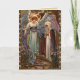 Kort för vintage av fläckglas. Julkort i vintage religiösa för anpassning. Snygg Bethlehem-ängel med Mary. Manger-scenkort. Heliga kväll.