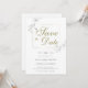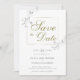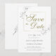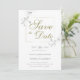 Grenar av vita orkidéer, handritade med grafitpenna, dekorerar detta enkla men sofistikerade, eleganta men chic bröllop sparad datum som har en delikat guld ram. Hints av guld i skriftens färg ger detta en festlig men dämpad färgglädje.