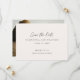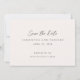 Traditionellt kort för stil bröllop spara datum med en enkel utformning av eleganten med det första namn i ett stort serif-teckensnitt.
