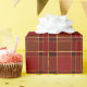 Traditionellt, elegant, klassiskt rutnät för rött pladatartan bestående av korkade rutor, vågrät och lodrät mönster med uppgifter om rutnätet guld linjer. Farmhouse land rustic helgdag mönster-gåva som är papper. Underbar till jul och julhelg.