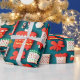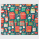 Ett sömlöst mönster som kombinerar traditionellt inslag med en modern tvist och som innehåller ljusa färger och geometriska former som genererats med hjälp av Ai.