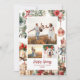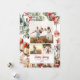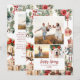Dela säsongens magi med detta eleganta julkort med en vacker collage-layout för tre familjefoton på framsidan och ett anpassningsbart meddelande på baksidan. Designen blandar traditionella julmotiv – frodiga gröna botaniska detaljer, röda bär, gyllene klockor, inslagna presenter och en charmig nötknäppare – allt mot en mjuk, målerisk bakgrund.