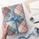 Traditionell julpapp Blå brun Rödstripe Gingham Mönster Wrapping Papper.