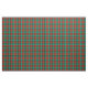 Tyg med ett traditionellt julplädmönster skuggar in av ljus röd ljus seafoamgrönt för kalkon och svart