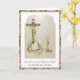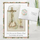 När du välkomnar någon till den katolska tron, kommer denna traditionella katolska framställning av Kristus på korset, Den Helige Ande och Nattvarden säkert att ge glädje på detta speciella tillfälle. Vackra persikoblads- och eukalyptusblommor omger bilden.