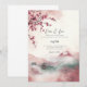 En modern design med koreanskt landskap i rosa färger och sakura, traditionell koreansk bröllopsinbjudan.