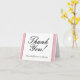 Den här traditionella tackkortsdesignen innehåller meddelandet "Tack!" på framsidan i skripttexten, tillsammans med ett anpassade på insidan. Ett hälsningskort som detta skulle kunna användas för att visa uppskattning för någon som har deltagit i ett bröllop, en begravning, studenten eller något annat evenemang.
