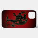 Svart dragonillustration som avgränsas av en tunn gyllene linje mot en röd och svart övertoningsbakgrund. Du kan anpassa den som du vill.