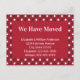 Du kan anpassa den vita texten med ditt namn och nytt adress. Överst kan du anpassa texten "Vi har Flyttat". Detta tillkännagivande om flyttan till jul har en traditionell röd grönt och vit mönster. All text kan redigeras eller tas bort.