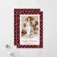 Traditionell röd karamellrandig julkort med foto