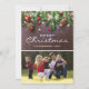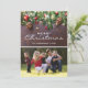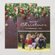 Fira den festliga säsongen med dessa rustika julkort med ett familjefoto som ersätts med ditt eget, en mörk trädgård bakgrund, festliga julgran grenar, röda & guldfärgade träddekorationer, stränga glödlampor, ditt namn och året.