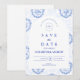 Traditionellt Blått Vitt Delft Bröllop Spara Datumet