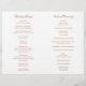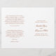 Klassiskt stil vikt Bröllopsprogram i terracotta med accent ord i elegant med kalligrafi. På framsidan finns din händelseinformation, insidan har din bröllopsfest och ceremoni. På baksidan finns en mall för meddelanden/citattecken. All text är bränd orange/rost över en vit bakgrund och kan ändras till valfritt färg genom att klicka på knappen "anpassa". Dessa Bröllopsprogram är perfekter för ett formellt bröllop.