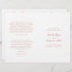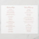 Klassiskt stil-vikt Bröllopsprogram med accent ord i elegantens kalligrafi-typografi. På framsidan finns din händelseinformation, insidan har din bröllopsfest och ceremoni. På baksidan finns en mall för meddelanden/citattecken. All text är i faux ro guld rosa över en vit bakgrund och kan ändras till valfritt färg genom att klicka på knappen "anpassa". Dessa Bröllopsprogram är perfekter för ett formellt bröllop.