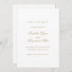 Eleganten sparar datumkortet med den traditionella ordalydelsen. Din namn finns i guld-kalligrafi och dina uppgifter finns i ett serif-teckensnitt över en vit bakgrund. Den här klassiska designen är perfekt för en formell, svart slips bröllop.