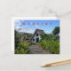 En vacker utsikt över ett traditionellt hus i Santana på ön Madeira tryckt på ett vykort.