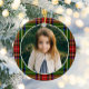 Traditionell julpapp Photo Ceramic Ornament ger ditt foto på en vacker röd julklapp med grönt.