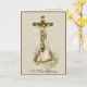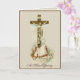 Vi bör alltid minnas våra egna kära avlidna anhöriga i den heliga mässan och genom våra egna böner och offer för att hjälpa dem att nå den eviga ro. S:t Ambrosius (d. 397) predikade: ”Vi har älskat dem under deras liv; låt oss inte överge dem i döden förrän vi genom våra böner har lett dem in i Herrens hus.” Detta är en vacker traditionell katolsk bild av Kristus på korset med en bibel, rosenkrans och blommor nedanför. All text och typsnitt kan ändras.