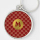 Traditionellt Röda och Guld kinesiska Mönster Mono Rund Silverfärgad Nyckelring