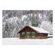 Fototryck av ett traditionellt logarhytt av trä med grönt i en skog i snö på vintern i Bayern i gräns mellan Tyskland och Österrike.