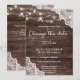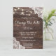Saker förändras. Skicka dina gäster en vacker ändring av datum på bröllopsinbjudan på grund av denna blå träd & slinga med strängljus inbjudan. Perfekt för landsbygd och bakgård bröllop.