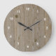 Tryckta väggur av trä struktur med en naturlig bakgrund av trästängsel på klockan ansikte som fungerar bra för en naturlig jordtoner som dekorerar för en klassisk väggdekorberöring. Lägg till något rum i ditt hus som du vill lägga till tecken eller naturligt struktur.