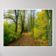 Träet väg genom träd poster FRÅN 8.99. Detta vackra fotografi av väg genom skogen eller skogen togs i Tjeckien på hösten. De stora träd och deras höst färger är naturliga konstverk för dina väggar hemma på spåret och leder tittaren in i skogen.