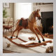 En grafik av hög kvalitet som gör att en trärockande häst kan ha en tidlös dragningskraft på vilken produkt som helst. Utformningen visar ett vackert utformat leksak i ett mysigt, solbelyst rum.