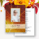 Kom ihåg din älskade och fira deras liv med de naturliga Shades of Autumn Funeral Service Program. Det här charmerande anpassningsbar-temat begravningstjänst eller minnesminnesminnesprogram för dödsolyckor innehåller ett digitalt målat närliggande naturfotografi av en röd, orange och gult färgad löv. Anpassa den efter ceremonidetaljer om firande i livets kyrkotjänst. Unik inmatning och idé för en höstsäsong i september, oktober eller november.