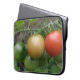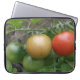 Den här väskan i den bärbara datorn fantastisk har ett foto av en massa mognande tomater, inklusive en röd tomat, orange och grönt i en rad, som växer på en tomatfabrik i en förortsträdgård. Fotografiet togs med makrofotografi för ett detaljerat resultat.