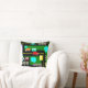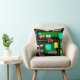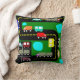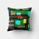 Dekorativ kudde har en geometrisk utformning av lastbilar och bilar på en väg och på en parkeringsplats.