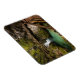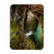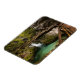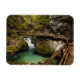 Den rektangulära fotomagneten med träpromenaden över rörelse suddade ut vatten genom det smala Vintgar Gorge canyon som transporterades in i bergen kring Sjö Bled i Slovenien.