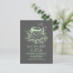 Romantisk vintage sparar datumet med rustik gammal träd grenar, vilda blommor och gammal stump med karvat kärlek hjärta och brud och brudgumm och brudgumms initialer. Utformning av kolvskiffer-grått och färg-toner av myntskiffer i grönt.