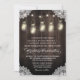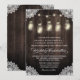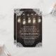 Trähustillbehör och spets för brölloppsinbjudningar i murarljusglas - med strängljus och upplysta murarljusglas över en trähusbakgrund med eleganta typsnitt. Se hela den matchande kollektionen i denna design på denna sida.