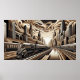 Train Art Deco Style gold copper black white Poster