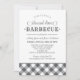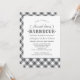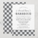 Denna sofistikerade bröllopsrepetitionens grillinbjudan har en djärv, kolgrå typografi och en djup kolgrå gingham-kant för ett stämningsfullt och grafiskt utseende med avslappnad charm. Blandad skrivstil och västerländsk "Barbecue"-bokstav gör designen unik. Alla namn, datum och detaljer är helt redigerbara. Ett stilrent val för en bakgårds- eller utomhusbröllopsrepetition.
